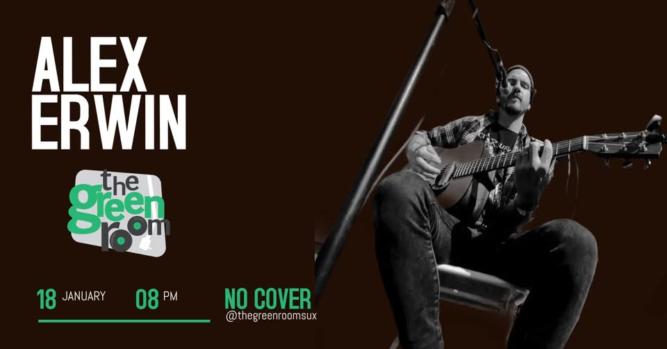 The Green Room presents an evening of live acoustic music with Alex Erwin, playing a mix of your favorite covers & originals. Show starts at 8:00pm. No Cover.