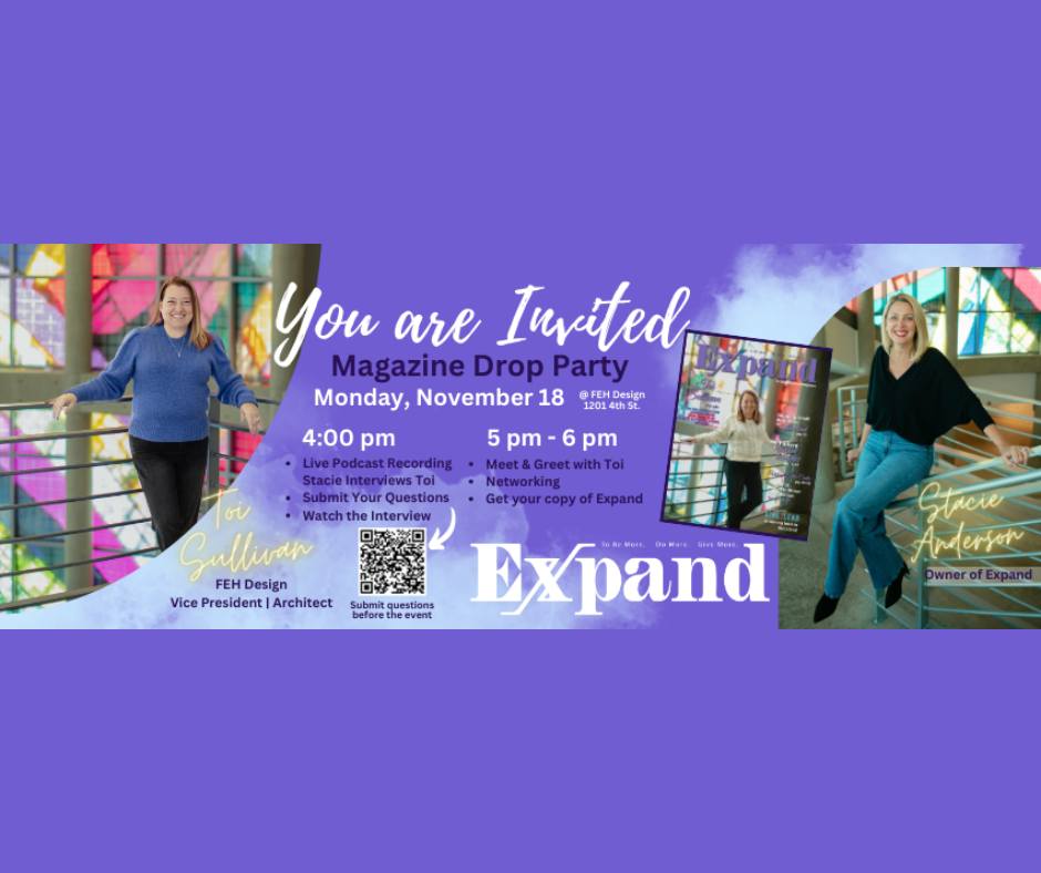 Join us at FEH Design on Monday, November 18th from 4:00 pm – 6:00 pm for our Magazine Drop Party – Releasing the November issue of Expand, formerly Siouxland Magazine.